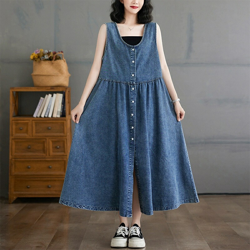 夏 ワンピース デニムジャンパースカート ジャンスカ レディース ジャンパースカート 森ガール デニム ノースリーブワンピース サロペット オールインワン 春 ファッション オーバーオール
