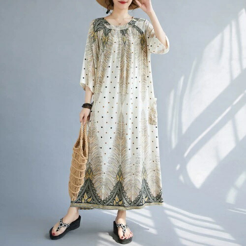 マキシワンピース カジュアルワンピース レディース 半袖 夏 ネック 春の大人ガーリー