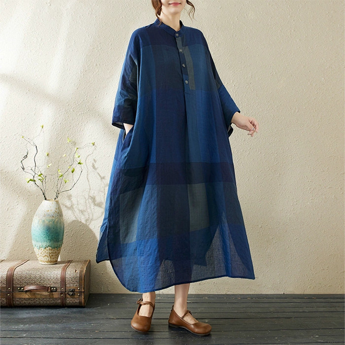 チェック ロングワンピース チュニック ロングシャツ レディース 春 夏 秋