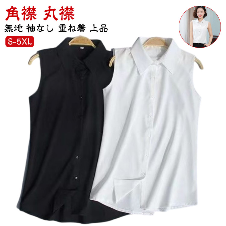 ノースリーブ シャツ レディース タンクトップ 襟付き ブラウス 大きいサイズ 黒 白 インナー トップス シャツブラウス Yシャツ ワイシャツ スーツ 春 夏 秋 冬 レイヤード 無地 袖なし 通勤
