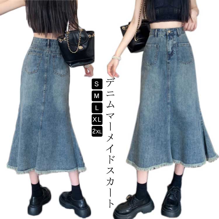 デニム マーメイドスカート スカート ロング レディース おしゃれ かわいい きれいめ ロングスカート フレア ミモレ丈 デニムスカート 無地 ボトムス 大きいサイズ 体型カバー フレ マキシスカート