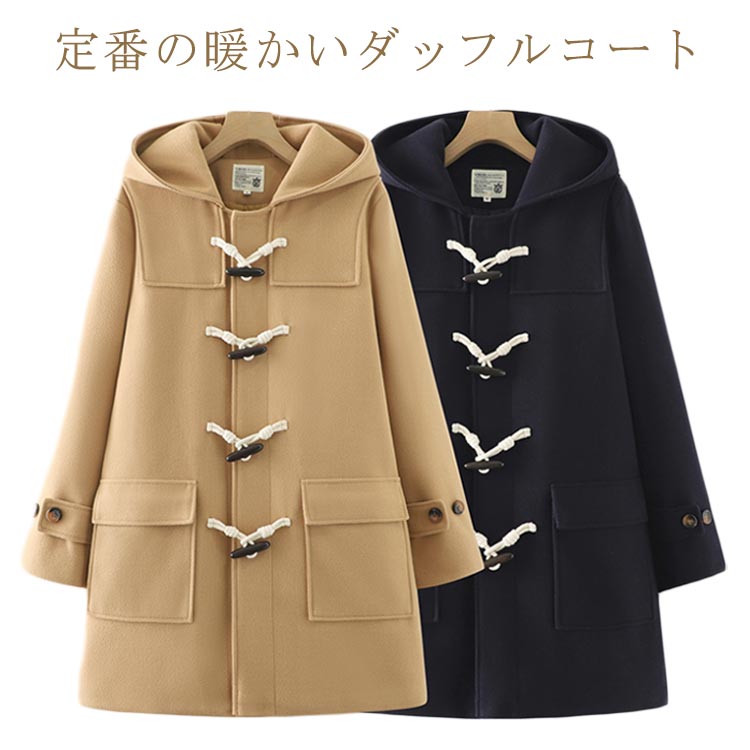 // ダッフルコート フード付 ミディアム丈 制服 暖かい 秋冬 おしゃれ