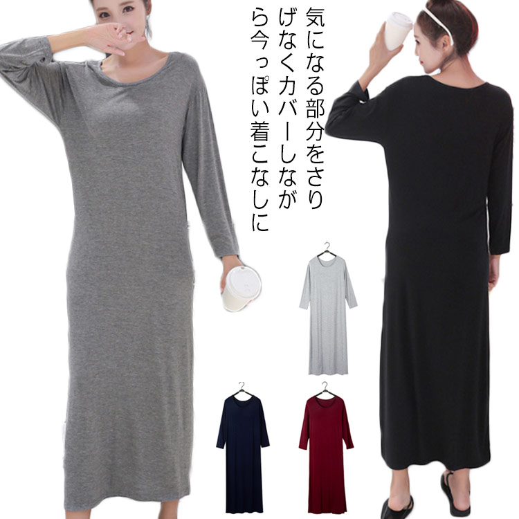 マキシワンピース 長袖 春ワンピース レディース 大人 無地 マキシ丈 ワンピース マキシワンピ マキシ丈ワンピ ロング 厚手 ブラック ライトグレー ワイン ネイビー シンプル 春 夏 ダックグレー
