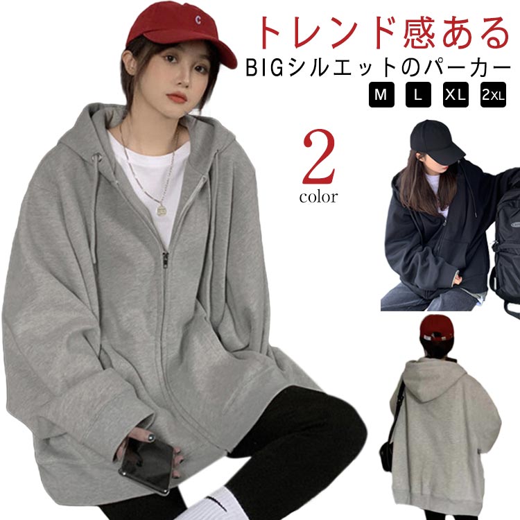 韓国ファッション スウェット 春ジャケット フード付き レディース パーカー アウター ジップアップパーカー ジップアップ 秋 長袖 ライトアウター 春 ゆったり 大きいサイズ パーカ 春秋