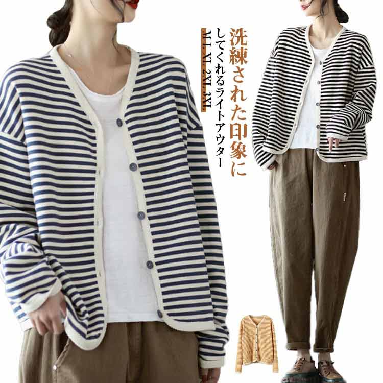 ~3 ボーダー柄カーディガン カジュアル ライトアウター 羽織 体型カバー