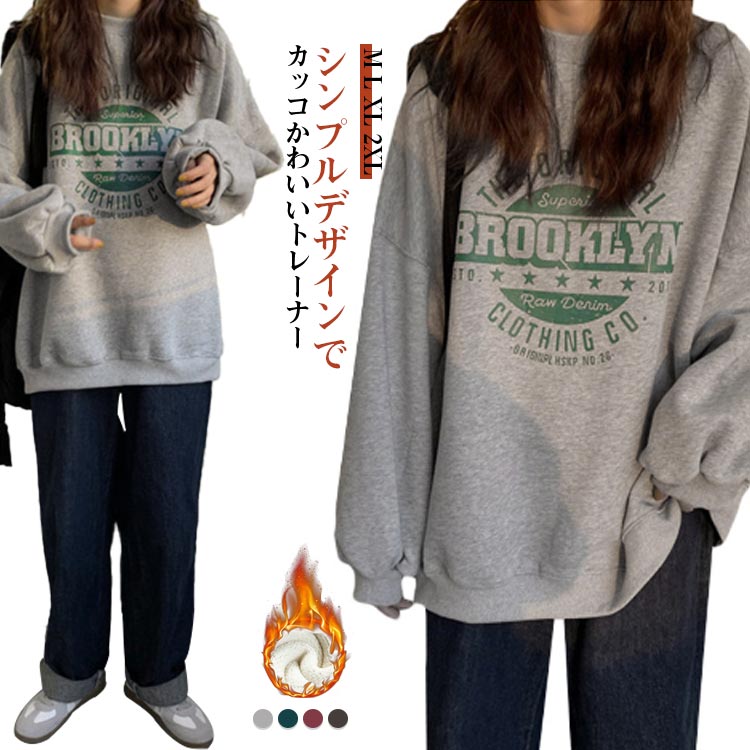 トレーナー 長袖 カジュアル 薄手 トップス 裏起毛 クルーネック レディース あったか スウェット カットソー 韓国風 プリントトレーナー ゆったり プリ 大きいサイズ