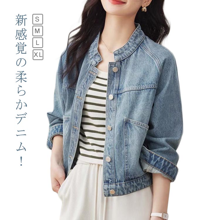 春ジャケット レディース ノーカラー ノーカラージャケット ライトアウター 春夏 長袖 ショート丈 トップス ブルゾン ジャケット 秋冬 羽織 Gジャン デニムコート きれいめ アウター