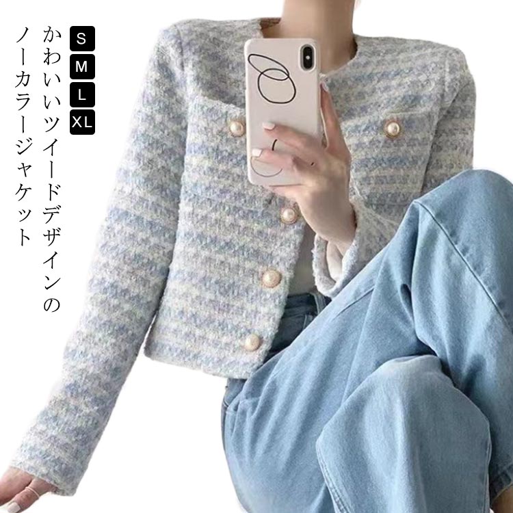 ツイードジャケット 母親 長袖 アウター 秋 レディース 韓国 母 ノーカラー 春服 卒業式 スーツ 入学式 入園式 卒園式 フォーマル ママ 結婚式 きれいめ カジュ ジャケット