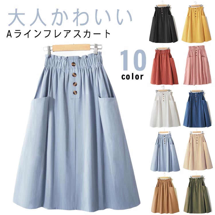 シンプル Aライン aライン レディース 抜け感 フレア フレアスカート スカート きれい おしゃれ 落ち感 カジュアル 大人かわいい 大人女子 膝下丈 ハイウエスト 無地 春 ポケット付き