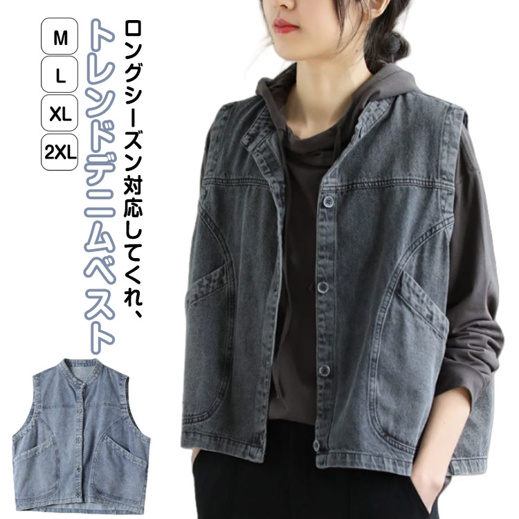 ~2 デニムベスト 前開き カジュアル 体型カバー 重ね着 春秋