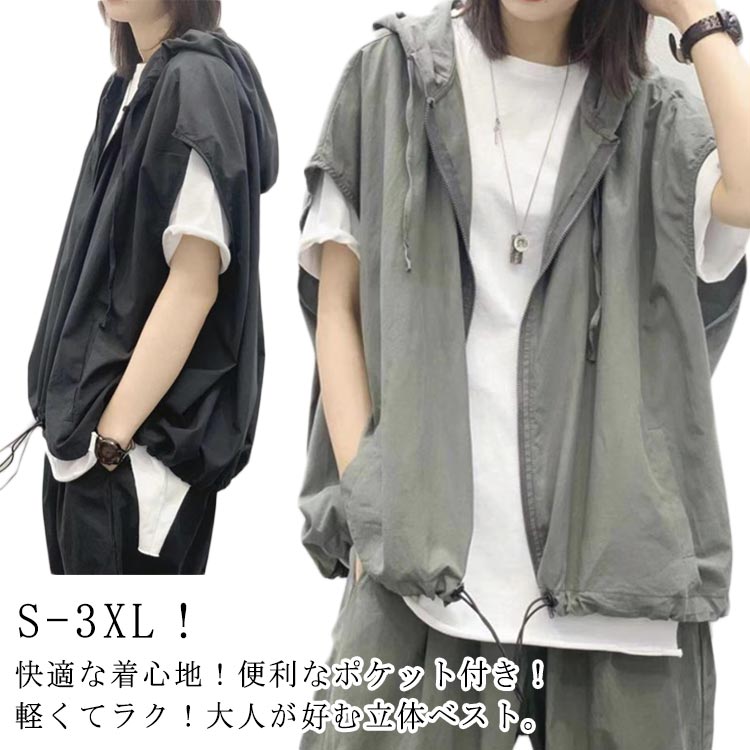 薄手 スポーツベスト 春夏 ベスト カジュアルベスト パーカー フード付き 前開き ファスナー ワークベスト アウトドア レディース Zipベスト スポーツ レジャー 軽量 通 撮影