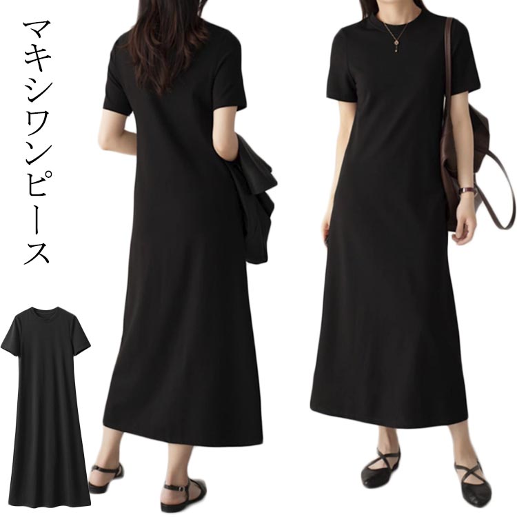 半袖 痩せ見え レディース 大人カジュアル 春 体型カバー Tシャツワンピース 大きいサイズ ロングワンピ シンプル 夏 ストレッチ 高見え 楽ちん おしゃれ きれいめ ナチ 着回し