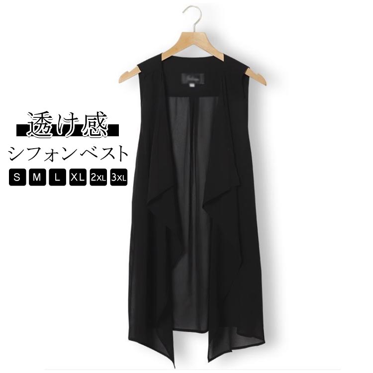 ~3 シフォンベスト ロング丈 透け感 薄手 重ね着 体型カバー