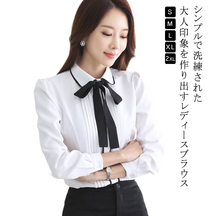~2 ボウタイブラウス 長袖ブラウス 韓国風 大人女性 通勤