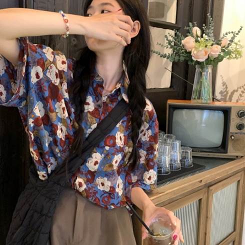 トップス シャツ 半袖 襟付き 前開き かわいい きれいめ シンプル 大人 おしゃれ かっこいい レトロ こなれ感 ラフ 個性的 主役級 存在感 花柄 春 夏 20代 レディース ボタ 10代