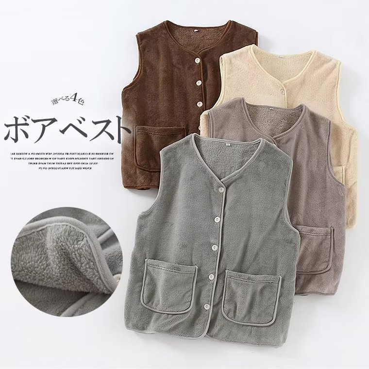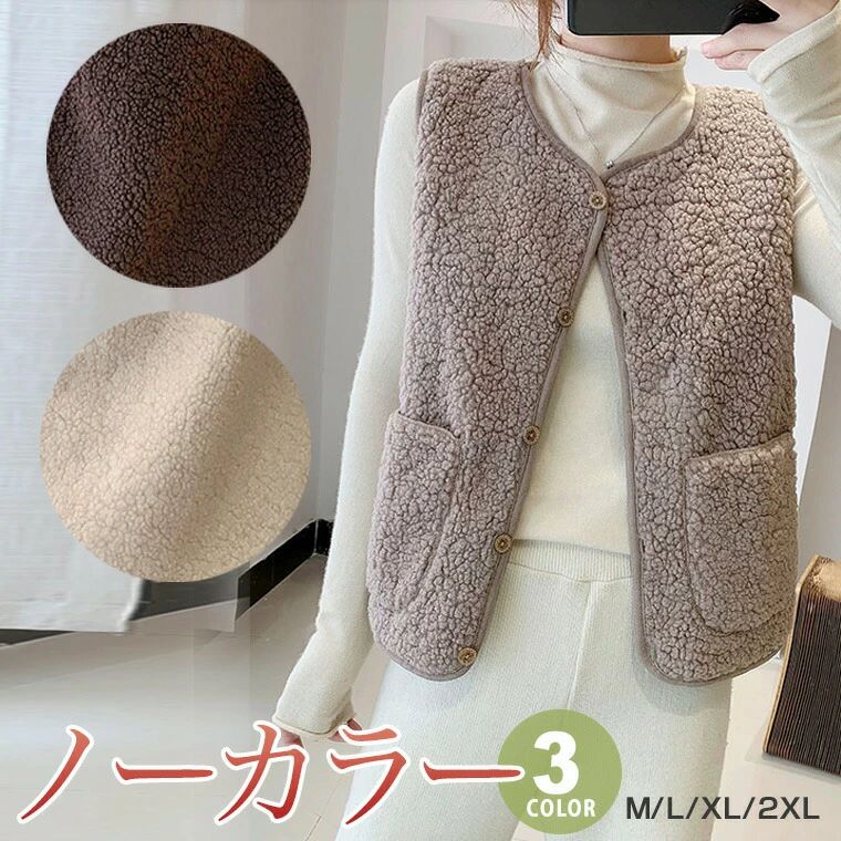 あったか ボア パイピング ベスト 丸首 襟なし ノーカラー 起毛 毛布 フリース 大きいサイズ 小さいサイズ