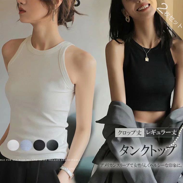 肩のラインをスッキリ見せてくれる 2枚セット 選べる2種類 クロップ丈 レギュラー丈 アメリカンスリーブ タンクトップ インナートップス クロップ ノースリーブ 重ね着 クロップド