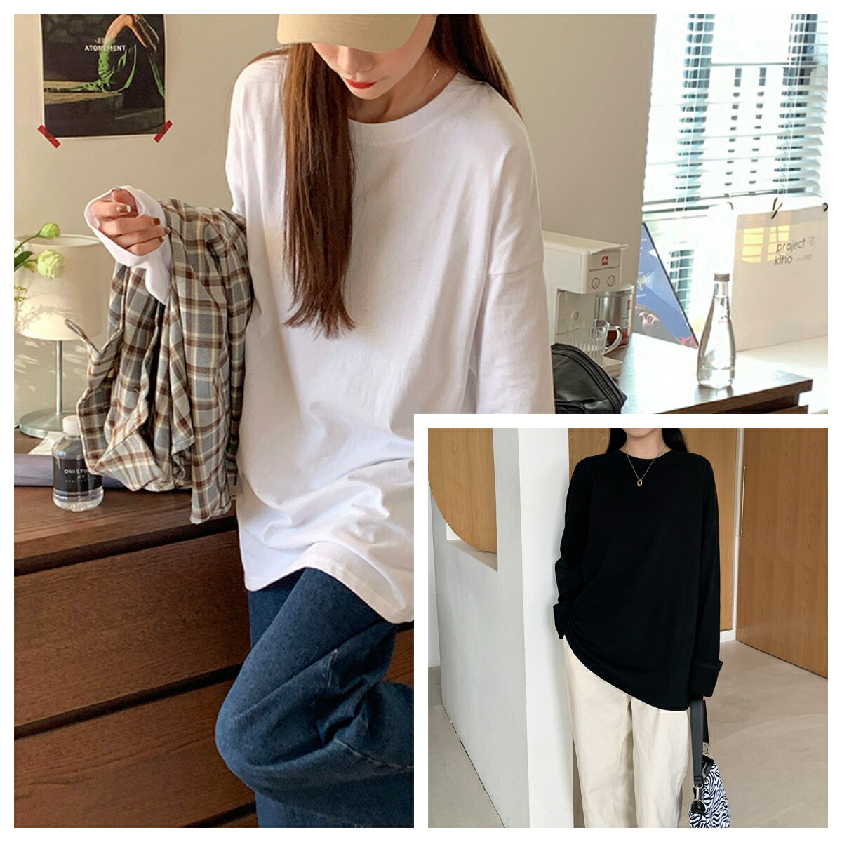 長袖 tシャツ レディースTシャツ レディースロングTシャツ トップス 無地 韓国 パーカー レディースファッション ホワイト ブラック