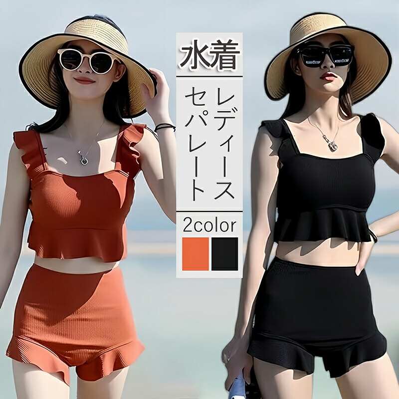 レディース 水着 ビスチェビキニ フリル タンキニ セパレート 2点セット ハイウエスト 伸縮性 可愛い 体型カバー水着 パッド一体型 ノンワイヤー ビキニ ショートパンツ 上下セット ビーチ 海水浴