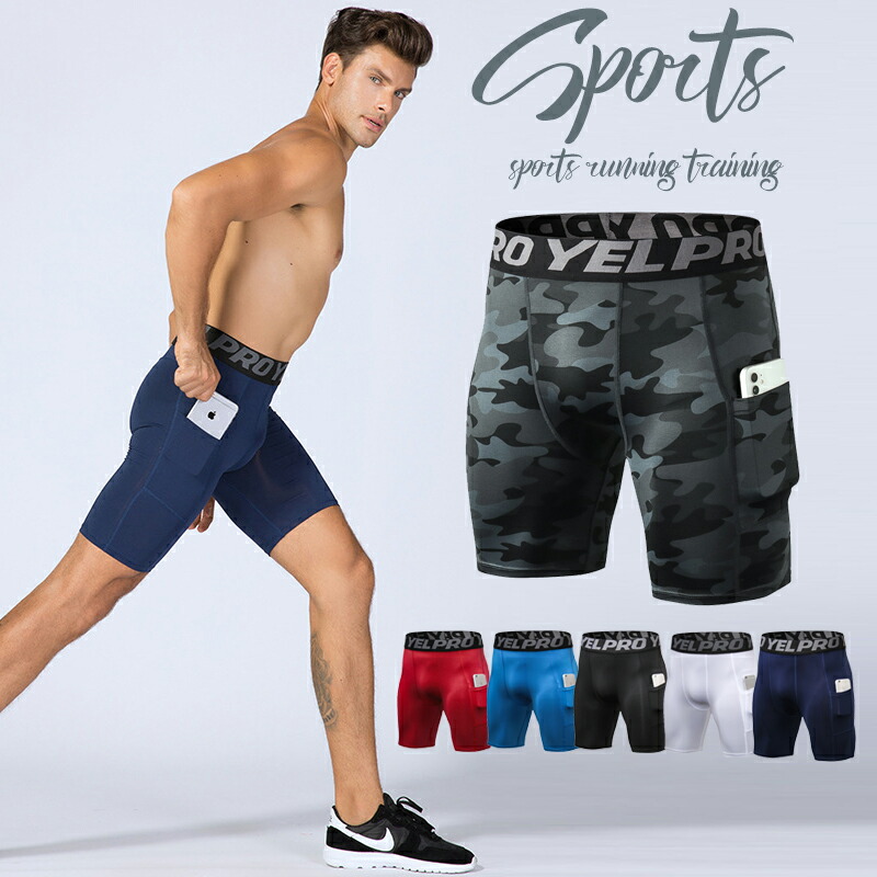 スパッツ メンズ ハーフ フィットネス ハーフスパッツ パンツ ポケット付き 大きいサイズ ショートパンツ スポーツインナー メンズ下着 運動 ランニング 吸汗速乾 通気性 快適