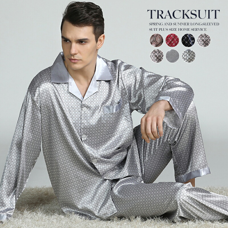 メンズ パジャマ 長袖 上下セット 春夏 大きいサイズ 薄手 ルームウエア 前開き 涼しい 花柄 セットアップ ナイトガウン 部屋着 快眠 通気性 紳士 スリップ 男性 記念日