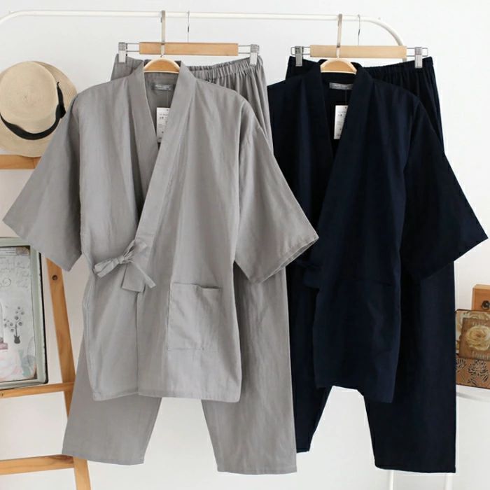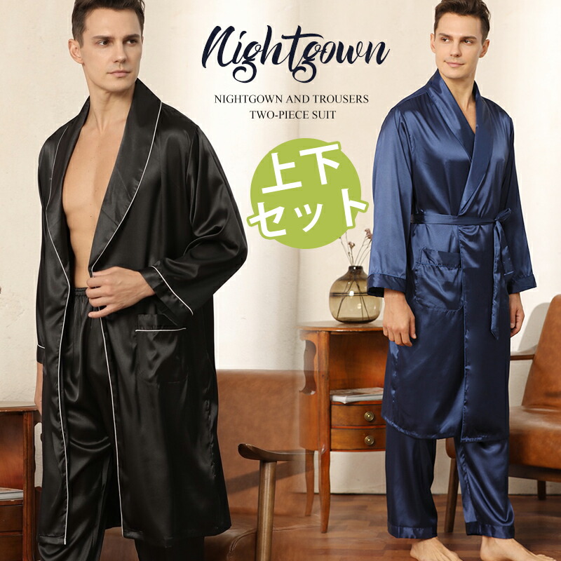バスローブ メンズ 夏 薄手 上下セット ルームウエア ナイトガウン 部屋着 パジャマ 膝丈 通気性 無地 紳士 スリップ パジャマセット 男性 温泉 ホテル 軽量 風呂上がり サ
