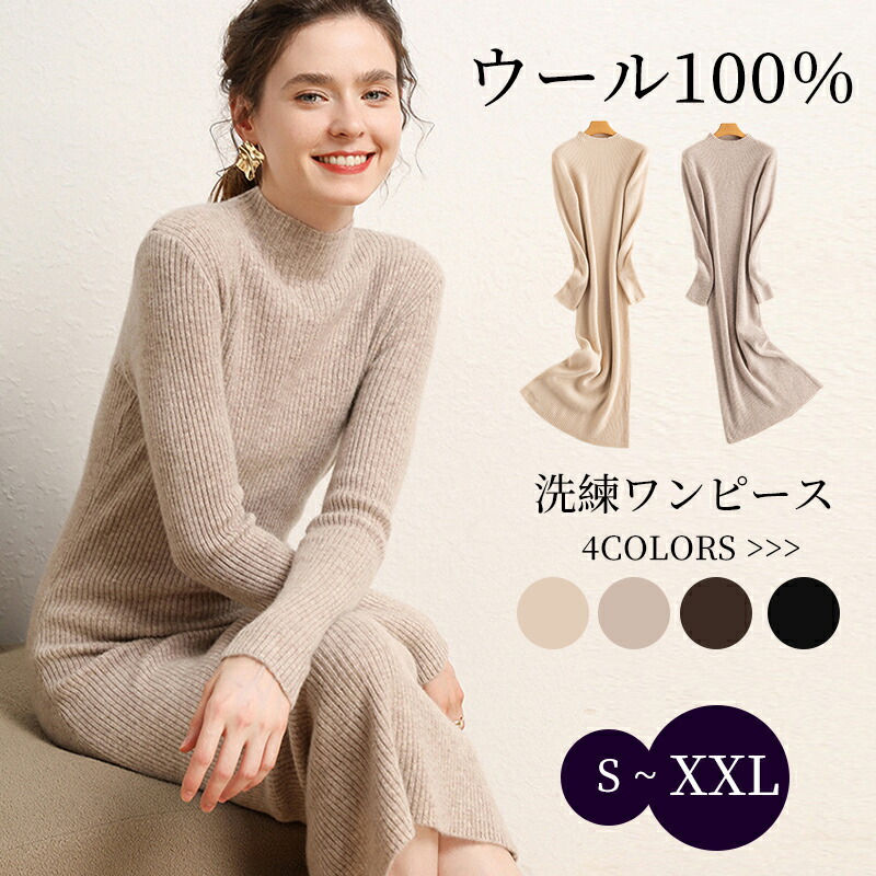 ニット ワンピース ウール100% レディース 長袖 ロング丈 セーター 冬服 暖かい シンプル きれいめ 着 せ おしゃれ オフィス ビジネス フォーマル インナーウェア 重ね着 セクシー 母の日