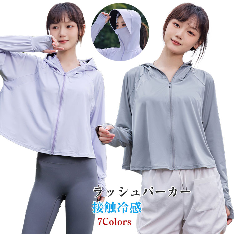 レディース ラッシュパーカー ラッシュガード パーカー 日焼け対策ウェア つば広 コーディング加工 フード付き 薄手 冷感 長袖 UVパーカー 紫外線対策 無地 シンプル 7色 アウトドア ビーチ 山