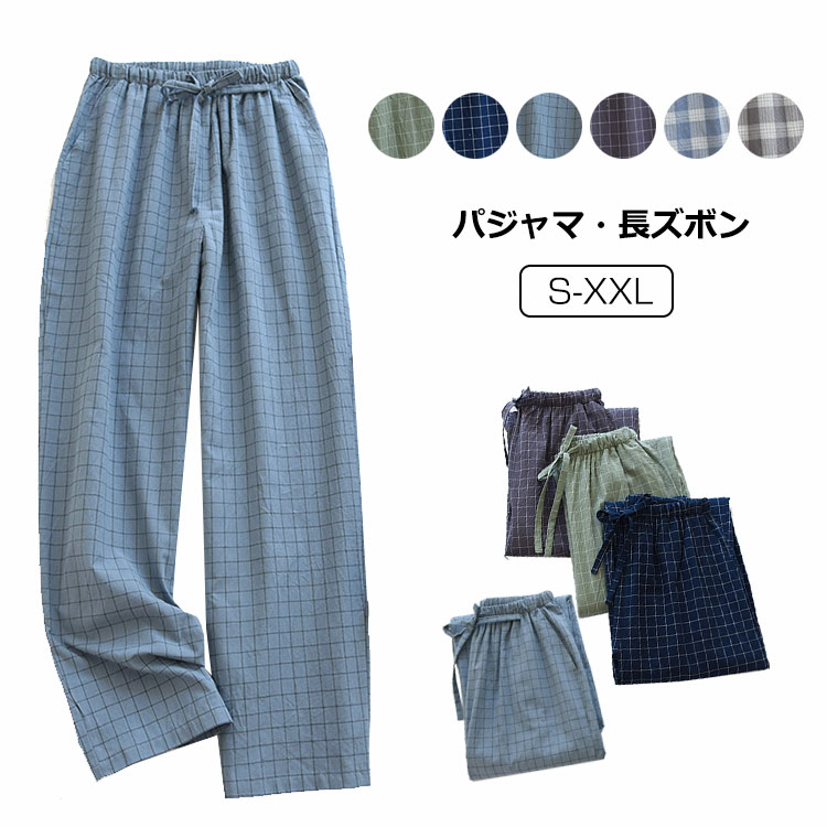 寝ズボン パジャマパンツ 薄手 メンズ 男の子 綿 ルームウェア チェック柄 ボトムス 部屋着 肌に優しい 通気 吸汗 カジュアル 春夏秋 2タイプ 6色 S M L XL XXL