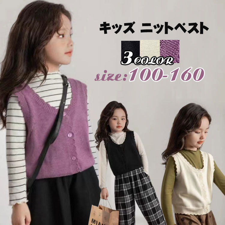 かわいい 女の子 ニットベスト コーデしやすいベスト シンプル ニットベスト