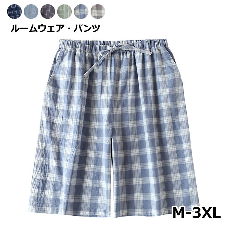 ルームウェア パンツ 綿 チェック柄 メンズ ハーフパンツ 部屋着 寝パンツ ゆったり 夏 快適 吸湿 ワイドパンツ ボトムス 父の日 寝巻き 下着 室内着 カジュアル 2タイプ M L