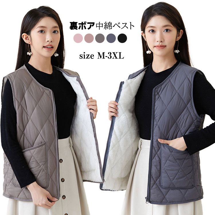 裏ボア ベスト レディース 中綿 インナーダウン 羽織り もこもこ 防寒 あたたかい 軽量 ジレ チョッキ 裏起毛 ダウンベスト 中綿ベスト 秋冬 暖かい インナーベスト シンプル 無地 ダウン