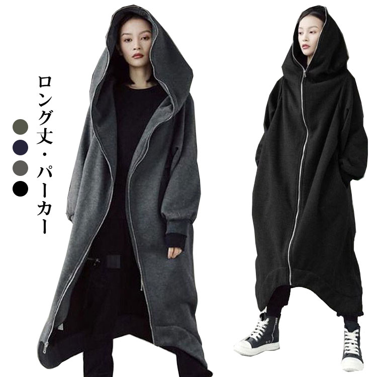 レディース パーカー ロング丈 フード付き ロングパーカー 秋冬 ファッション パーカーワンピース 無地 体型カバー 微起毛 スウェット アウター ジャケット 羽織 ゆったり 大きいサイズ ジッパー