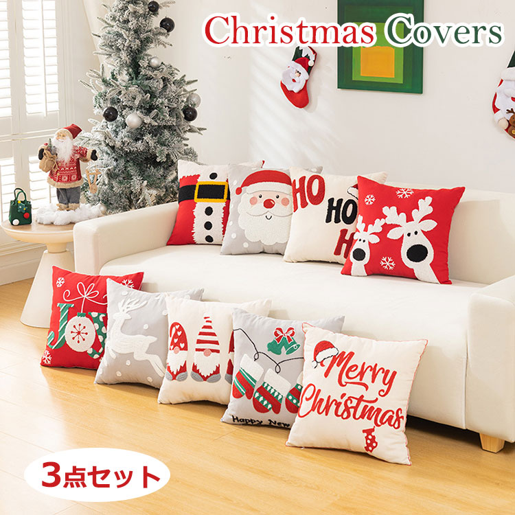 クリスマス枕カバー 刺繍入り クッションカバー クリスマス装飾 抱き枕 サンタクロース 手袋 トナカイ インテリア パーティー お部屋 雑貨 クリスマスパターン オーナメント 飾り 45 × c