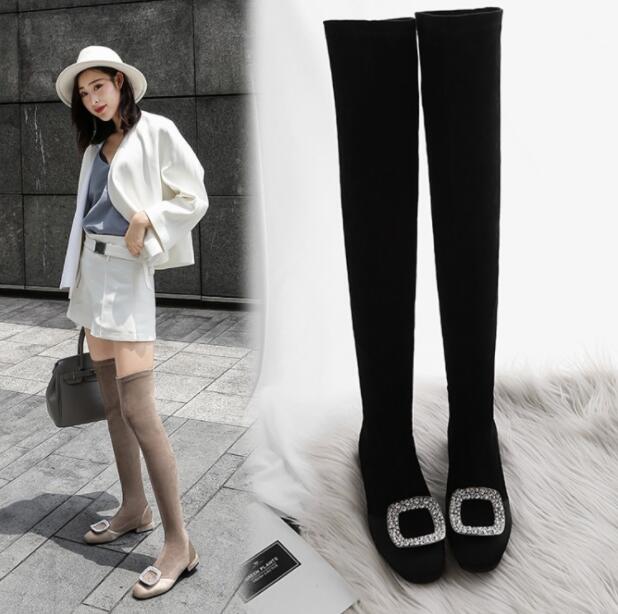 レディースブーツロングブーツニーハイブーツストレッチ素材大きいサイズスエードロング丈裏起毛秋冬春秋ストレッチソックスブーツ