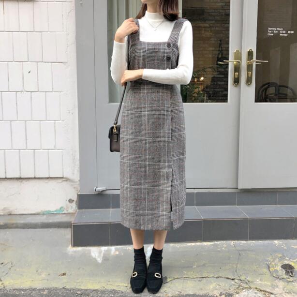 ワンピース 秋 冬 ジャンパースカート ネック ネック ジャンパースカート 秋 冬 ノースリーブワンピース 重ね着 チェック柄ワンピース 可愛い