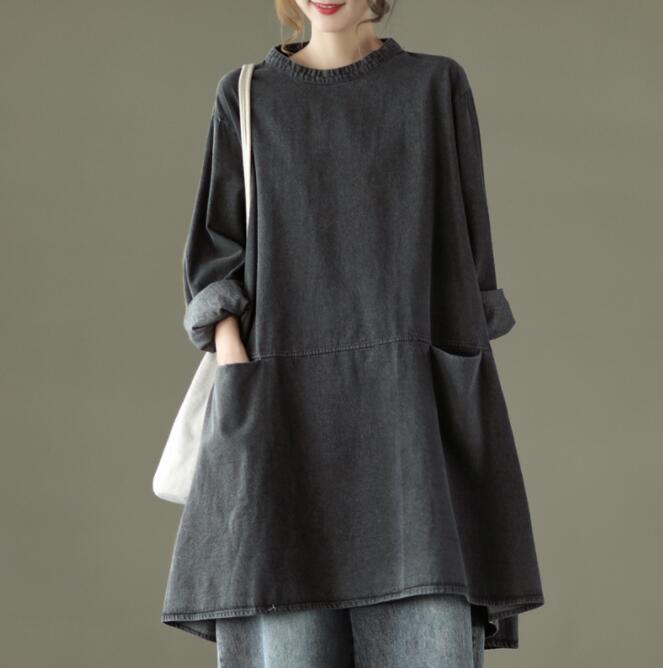 デニムワンピース 春秋 森ガールレディース デニム パーカーワンピース マタニティワンピース 長袖 ナチュラル 大きいサイズ