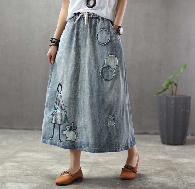 デニムスカートダメージ加工大きいサイズロングスカート美ラインボトムス ロングスカートレディースゆったりライン