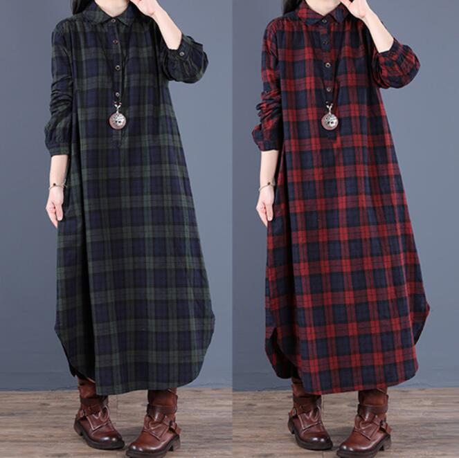 シャツワンピース チェック シャツワンピース ロング ワンピース 秋冬 ワンピース 長袖 マキシ丈 シャツワンピース 大きいサイズ ゆったり 着痩せ