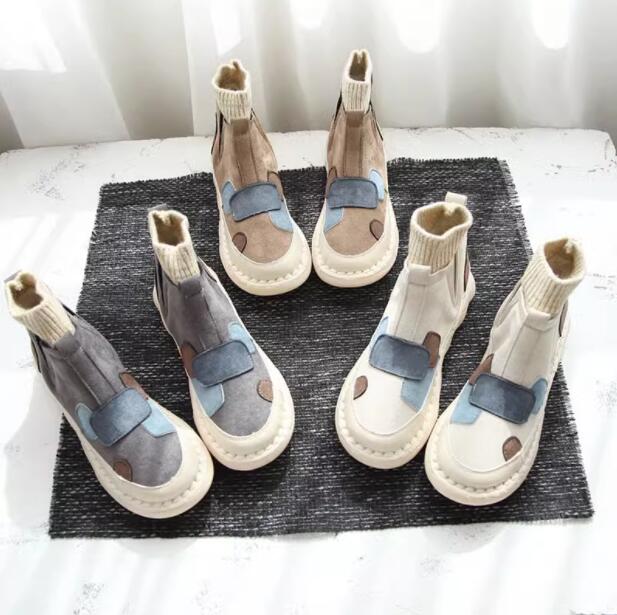 ソックスブーツ レディース ショートブーツ 秋冬 森ガール ヒール3cm フラットシューズ 大きいサイズ 美脚 厚底 疲れない 安定感