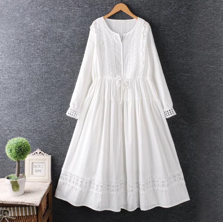 白ワンピース 無地 ロングワンピース レディース 森ガール可愛い 姫様 ロリータ風ワンピ マキシ丈 学生 可愛い 長袖 春秋 森ガール