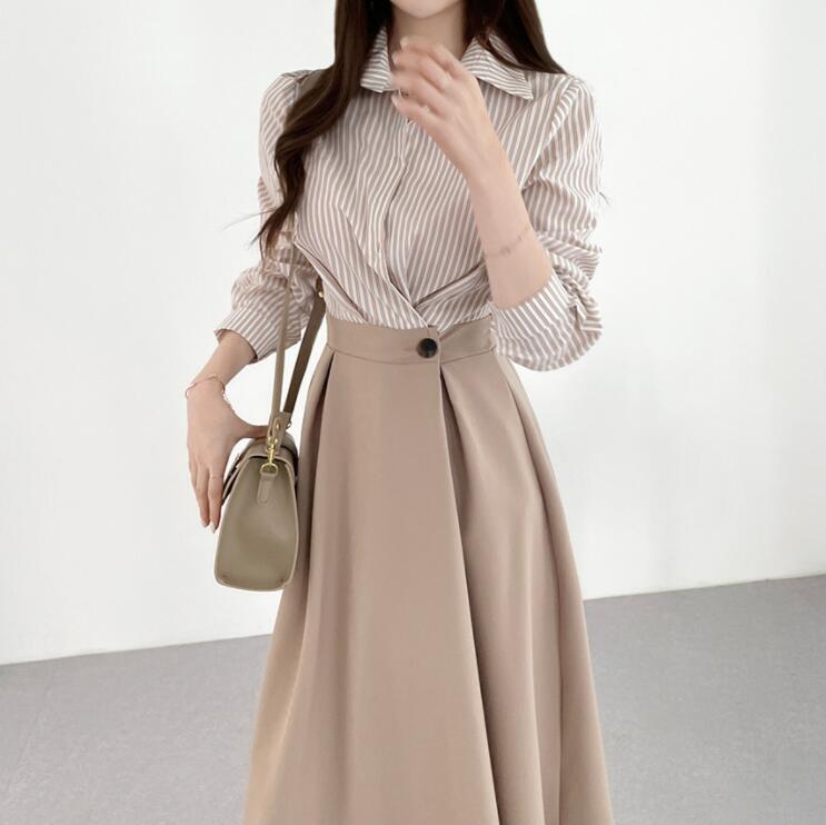 シャツワンピース レディース きれいめ ワンピース 秋新作 長袖ラインスカート オシャレ韓国風 大人 通勤 細見え 着痩せ 高見え