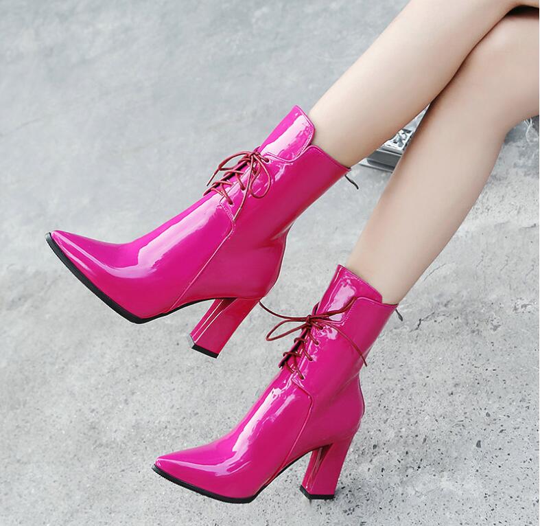レディースブーツショートブーツPU ブーツ編み上げストレッチ素材 ショート丈秋冬ストレッチソックスブーツ太ヒール