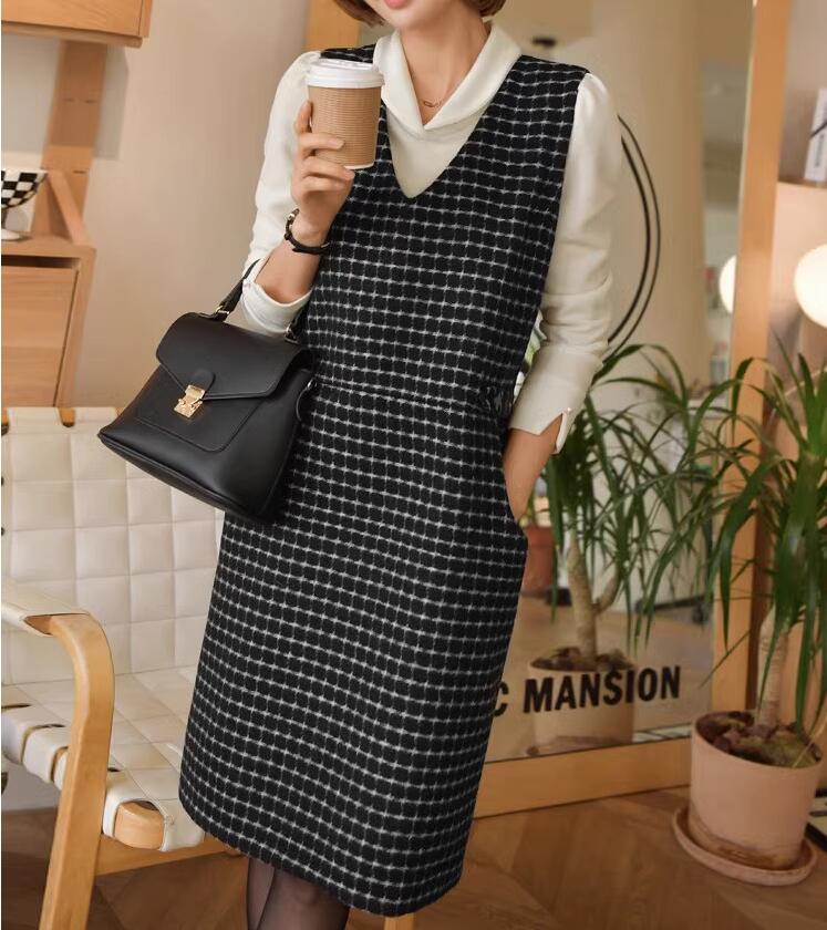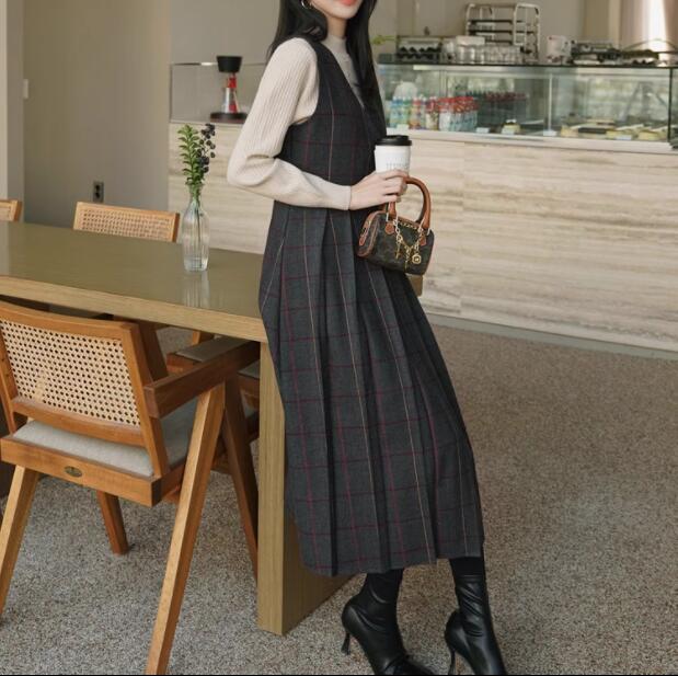 ワンピース 秋 冬 ジャンパースカート ジャンパースカート 秋 冬 ノースリーブワンピース 重ね着 チェック柄ワンピース 可愛い