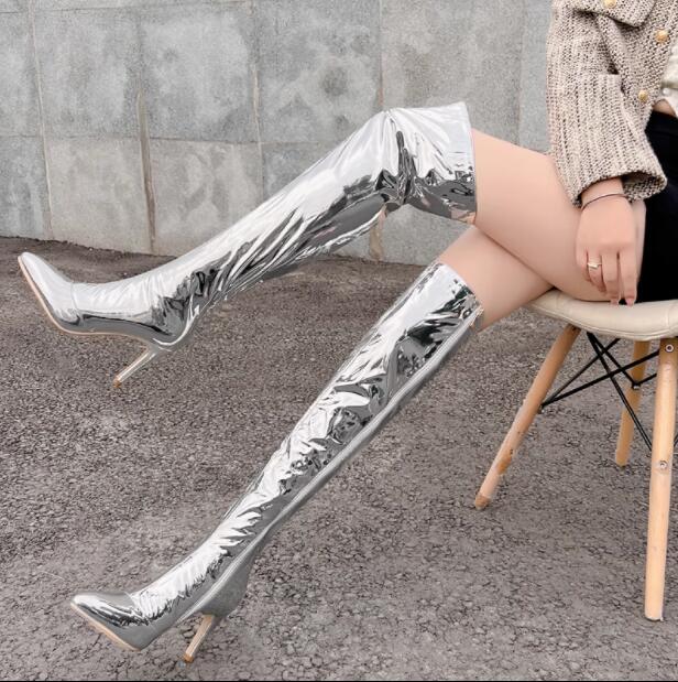 レディースブーツロングブーツニーハイブーツエナメル大きいサイズロング丈ダンス舞台靴 レディース靴 ブーツ その他