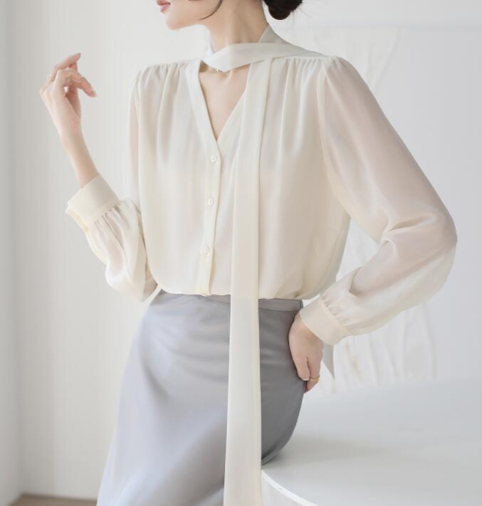ブラウス 長袖シャツ とろみシャツ フォーマルブラウス リボン付き 長袖 大人可愛い オフィス カジュアル
