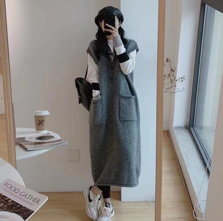 ワンピース レディース 秋 冬 ベスト ニットワンピース ロング ロングベスト ロングニット ノースリーブ ニットベスト ロングワンピース
