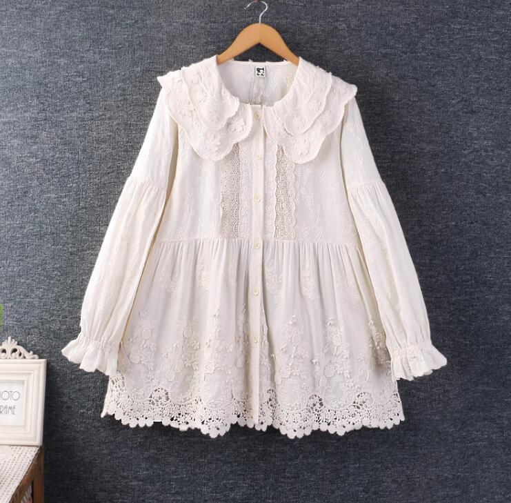 ブラウス トップス レースブラウス レディース ブラウス 長袖 トップス 大人 可愛い 丸襟 トップス ブラウス 森ガール
