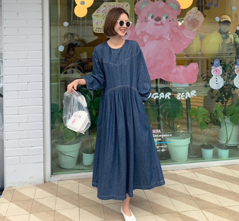 デニム ワンピース 春 秋 長袖 レディース カジュアル デニムワンピース マキシワンピース ミモレ丈 ゆったり 体型カバー 大きいサイズ