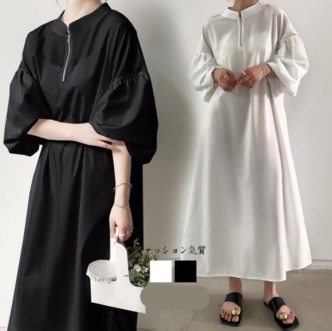 ワンピース 春夏 レディース きれいめ ロングワンピース ゆったり マキシワンピース バルーン袖 パフ袖大きいサイズ ロング フレアワンピース